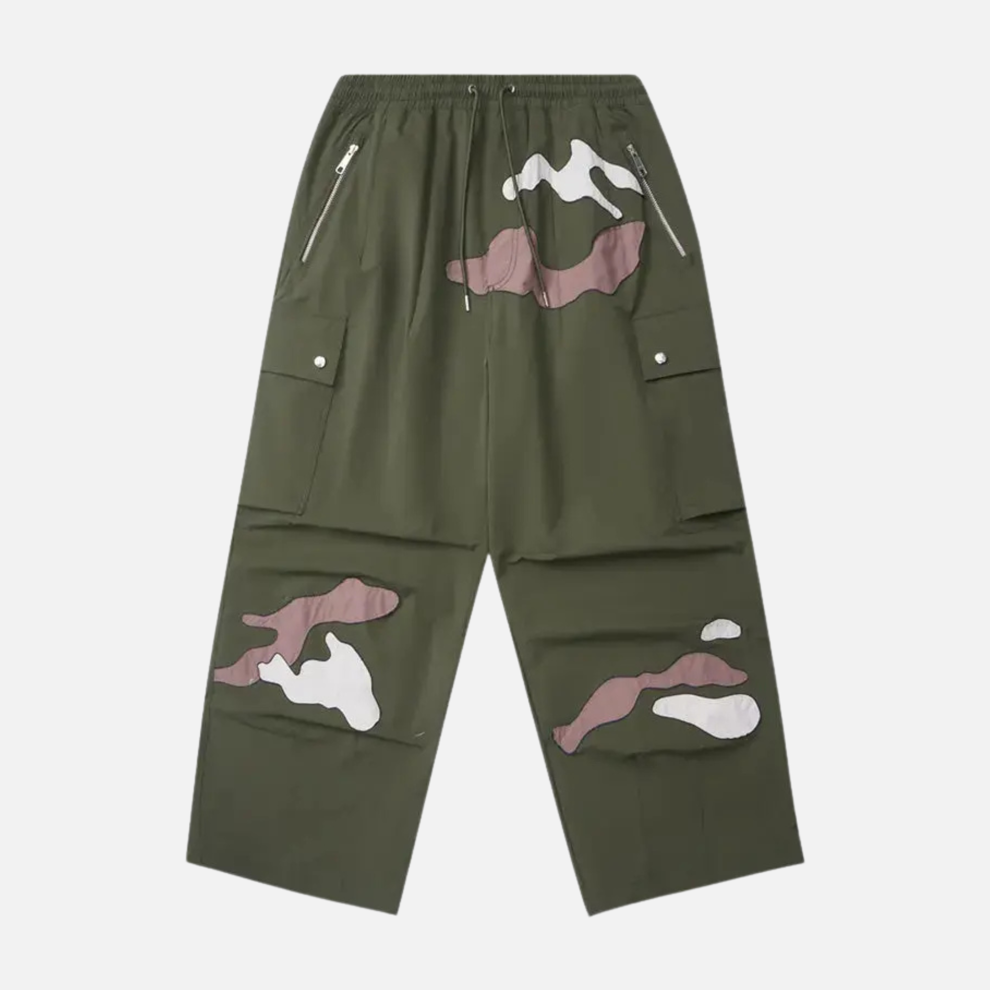 The Byers Cargo Pants boast a striking front darts design, offering a relaxed straight-leg fit with a modern,slouchy silhouette. Functional details like 3D pockets and an adjustable drawstring waist blend practicality with style. The double-layered text appliqué embroidery add texture and a luxurious feel.