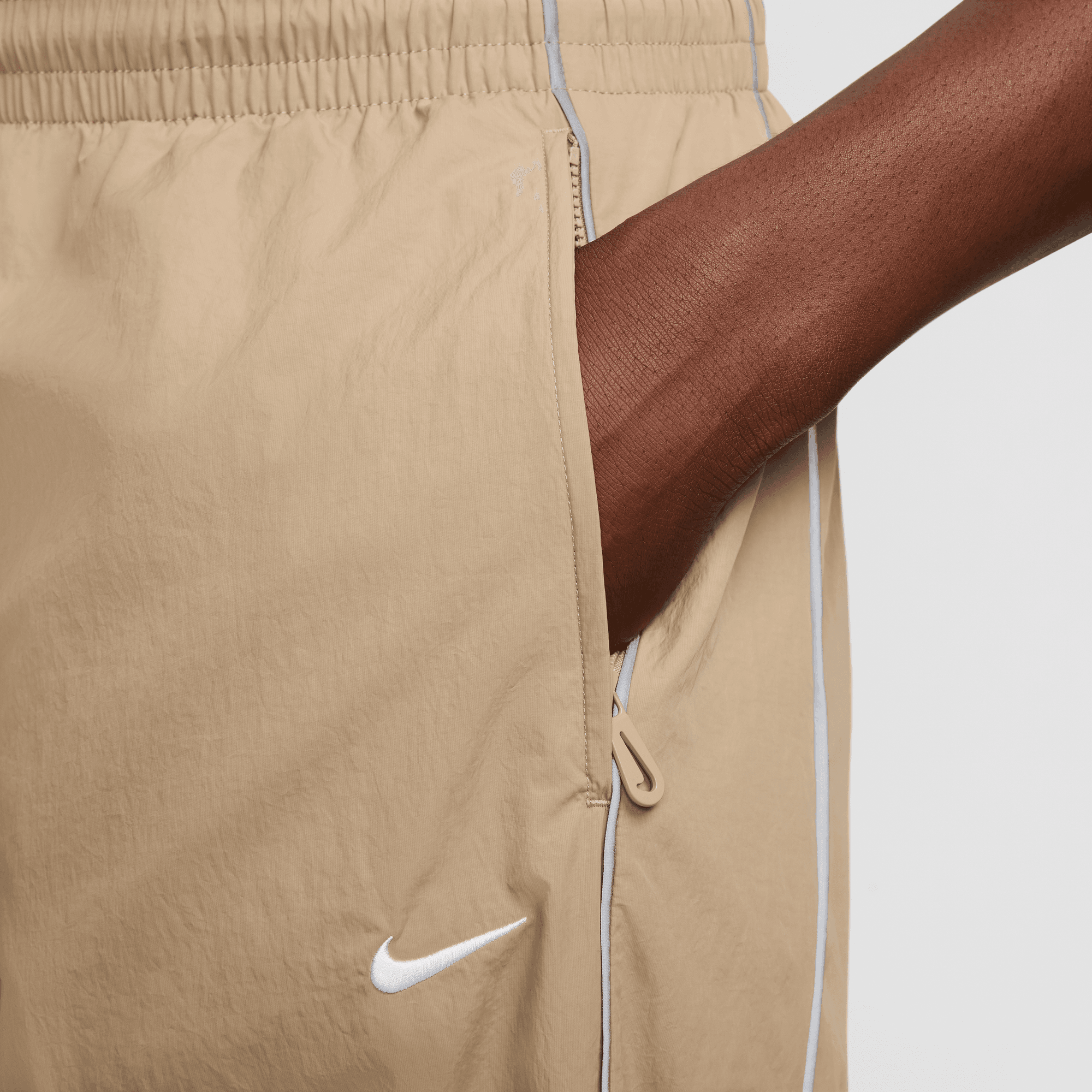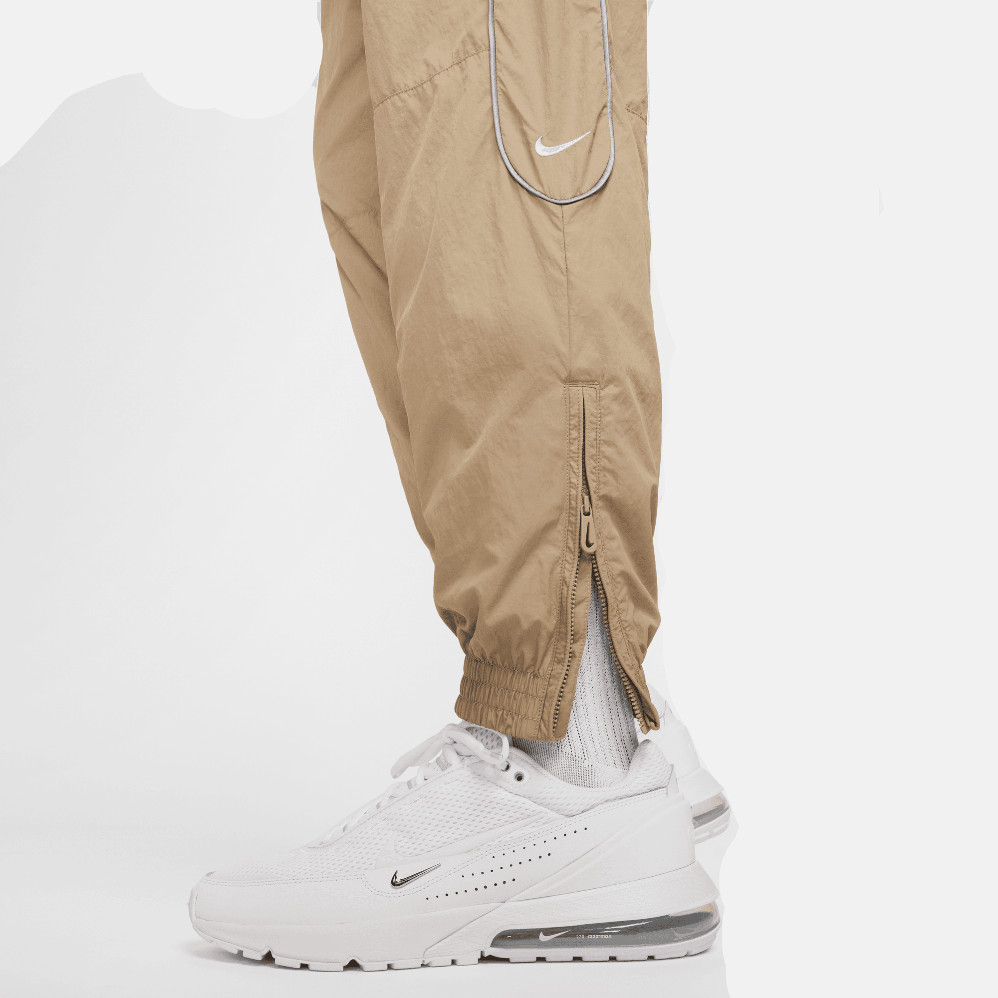 The ultimate pants for getting around town in rain or shine, NIke Solo Swoosh track pants give you the clean, classic style that's synonymous with our Solo Swoosh collection. Water-repellent woven fabric is set off with track-inspired reflective piping on the outer legs. The zippered pockets and ankle cuffs give you the luxury of securely storing your things and adjusting your fit when you're on the go.