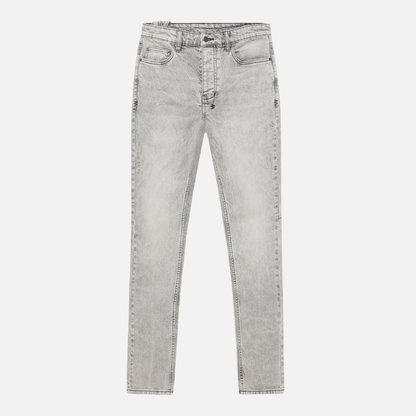 The Chitch Jupiter Skrawl is a slim tapered jean with a mid-long rise and signature dutch tab. Crafted from premium comfort stretch grey denim with an overdye and stone wash, it features tonal seasonal embroidery front and back, finished with Ksubi branded hardware, T-box, and 4x4 embroidery.