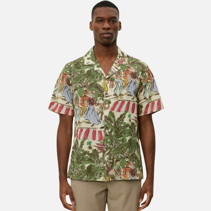 A summer statement piece. Decorated with some of the lead artwork for the season in a bold palette, the Lukas is finished with a camp collar.
