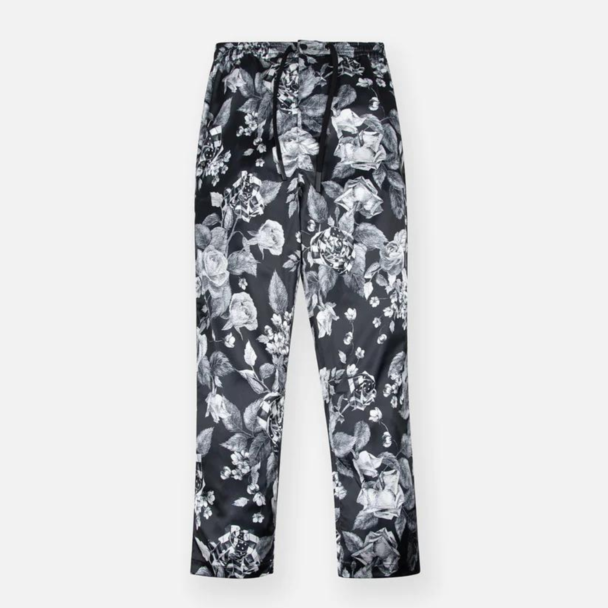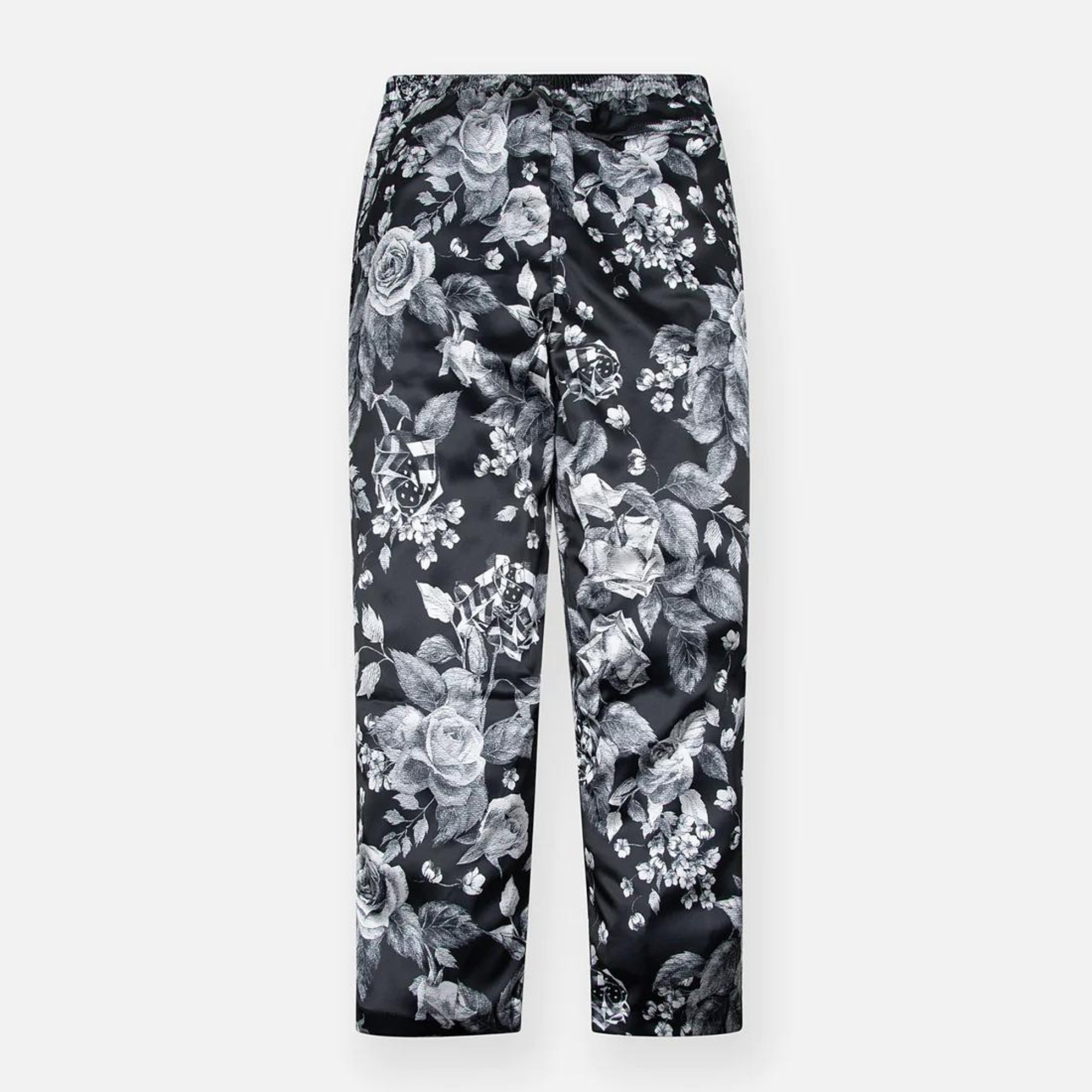 The Roses Relaxed Pant features the black and white flag roses all-over print, front on seam pockets, Plane logo metal rivet pin, zip fly with snap closure, back welt pocket, all in a relaxed fit.