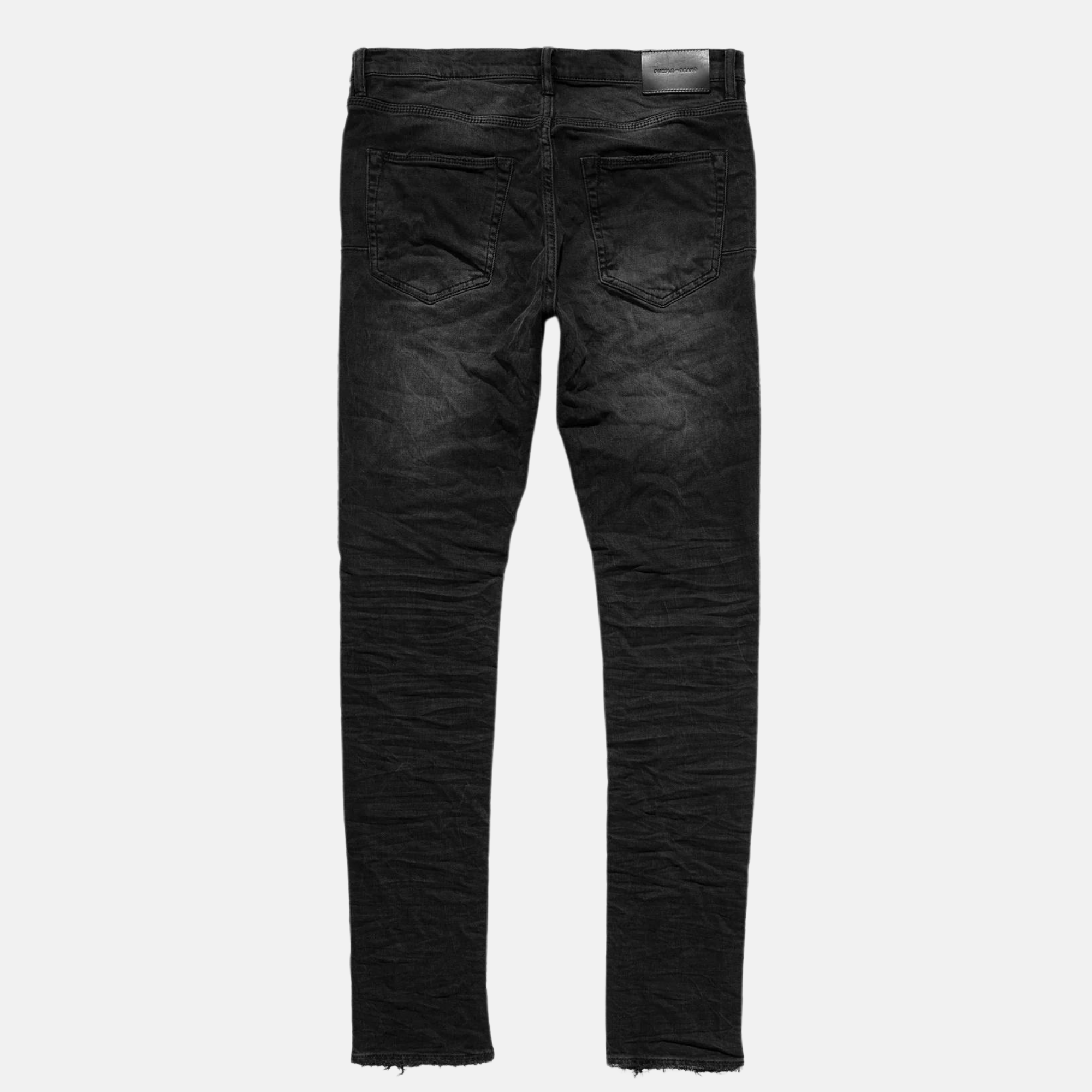 Stretch Denim Faded Black 3D Effect. Abrasion Belt Loop & Pocket. Reinforced Belt Loop & Pocket. Exclusive Purple Brand & Blue Sky Inn Label & Hang Tag.