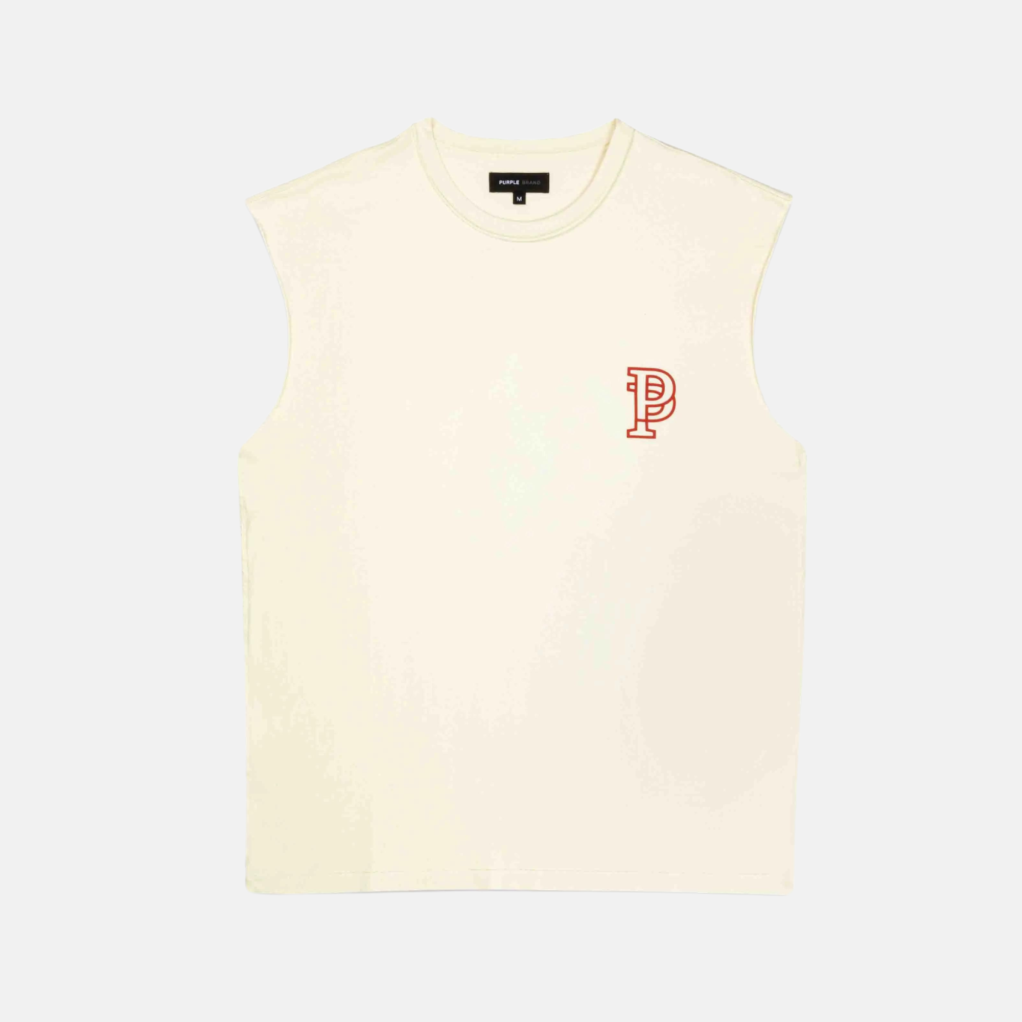 This tee features a double Purple Brand monogram at the chest, a crewneck and cut-off sleeve detailing. It comes in a premium off-white textured jersey knit, made from 100% cotton that provides a lightweight feel, and has a relaxed fit for elevated comfort. Regular Fit Inside Out Seams. Textured Jersey Knit. Left Chest Raised Matte Silicone Print. Center Back Raised Matte Silicone Print. Enzyme Washed.