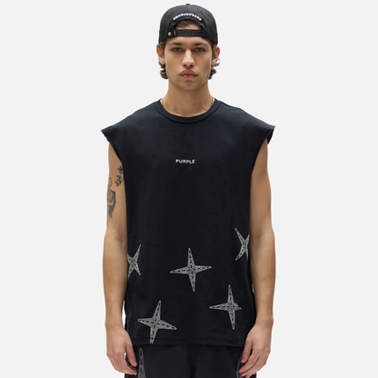 Purple Brand Black Sleevless Star Tank Top