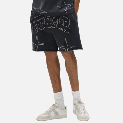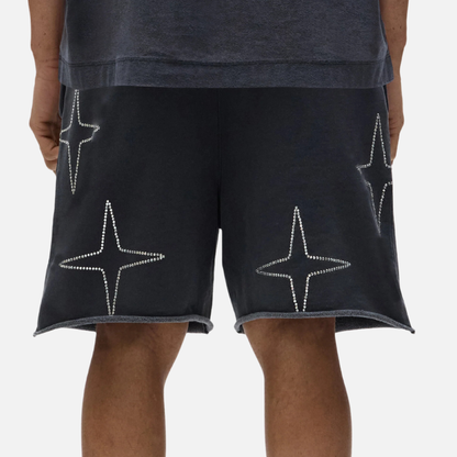 Purple Brand Black Crystal Star Shorts